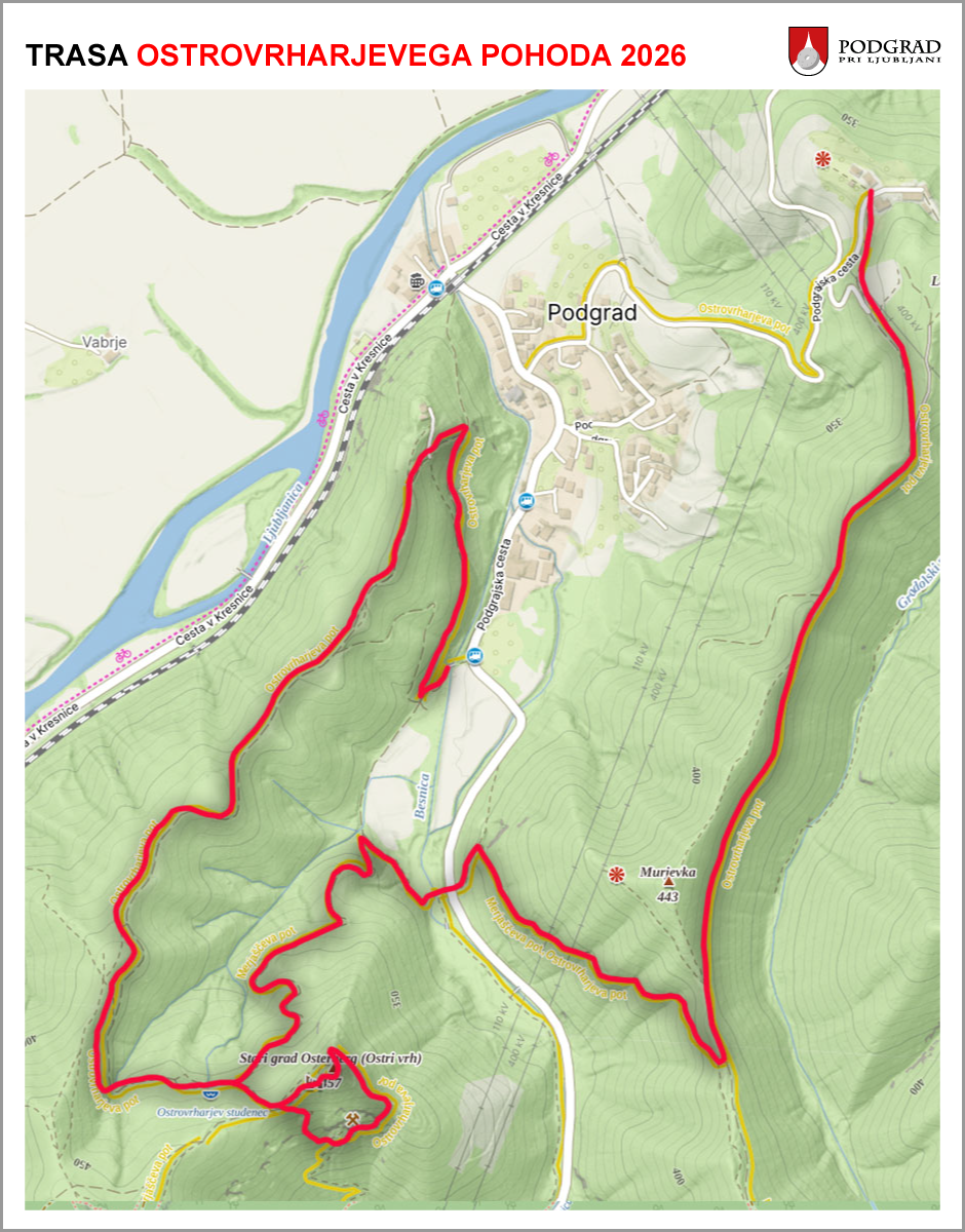 Vabimo vas na 18. Ostrovrharjev pohod, ki bo v nedeljo, 19. aprila 2026. Start pohoda bo ob 10. uri, na koncu vasi Podgrad pri Ljubljani, na ovinku za nekdanjo tovarno ARBO.